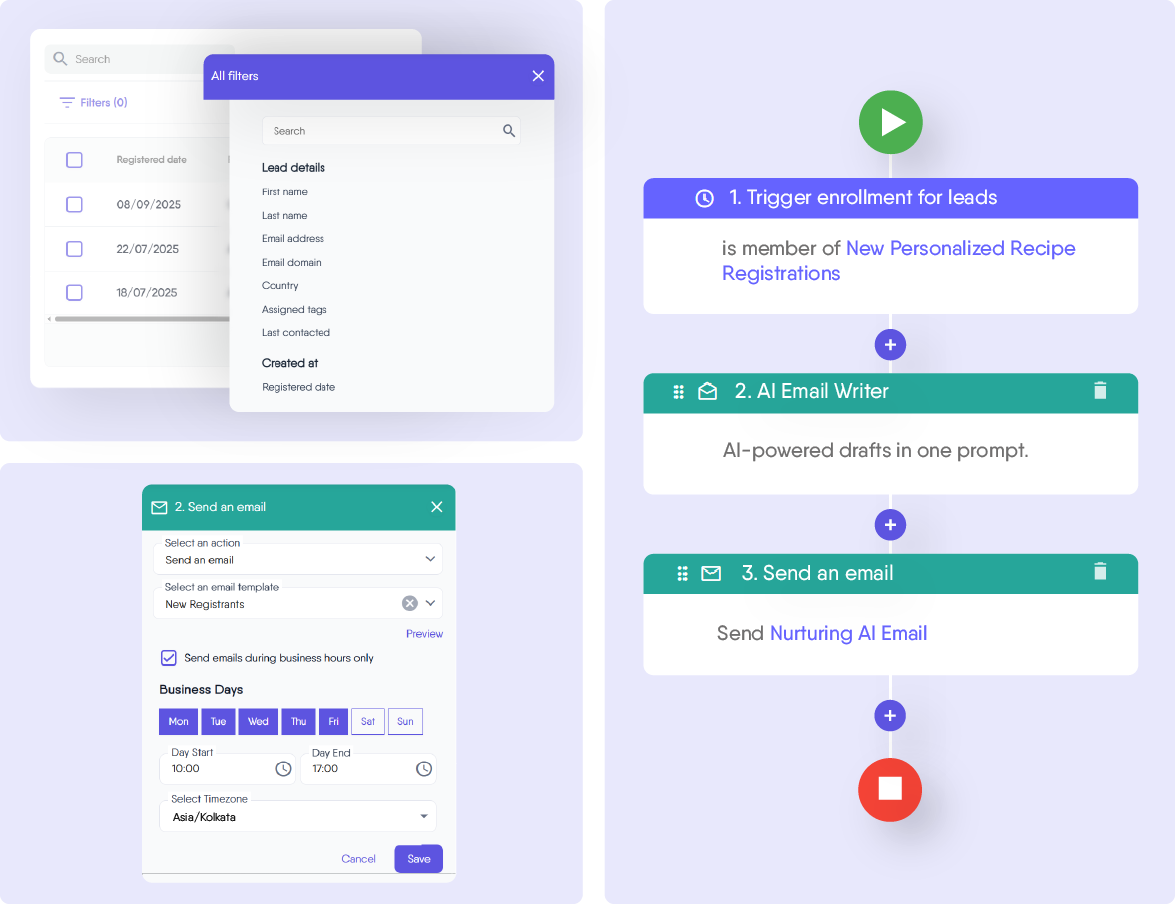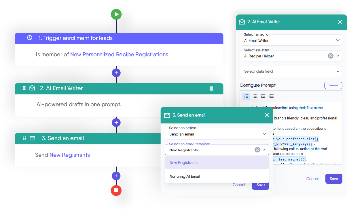 Email marketing made for food bloggers. Launch value‑first lead magnets to capture high‑quality subscribers, learn what they want, and send on‑brand follow‑ups automatically.