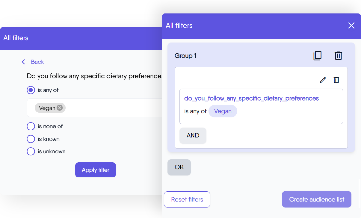 Ask one smart question over time like diet, cuisine to build segments without long forms