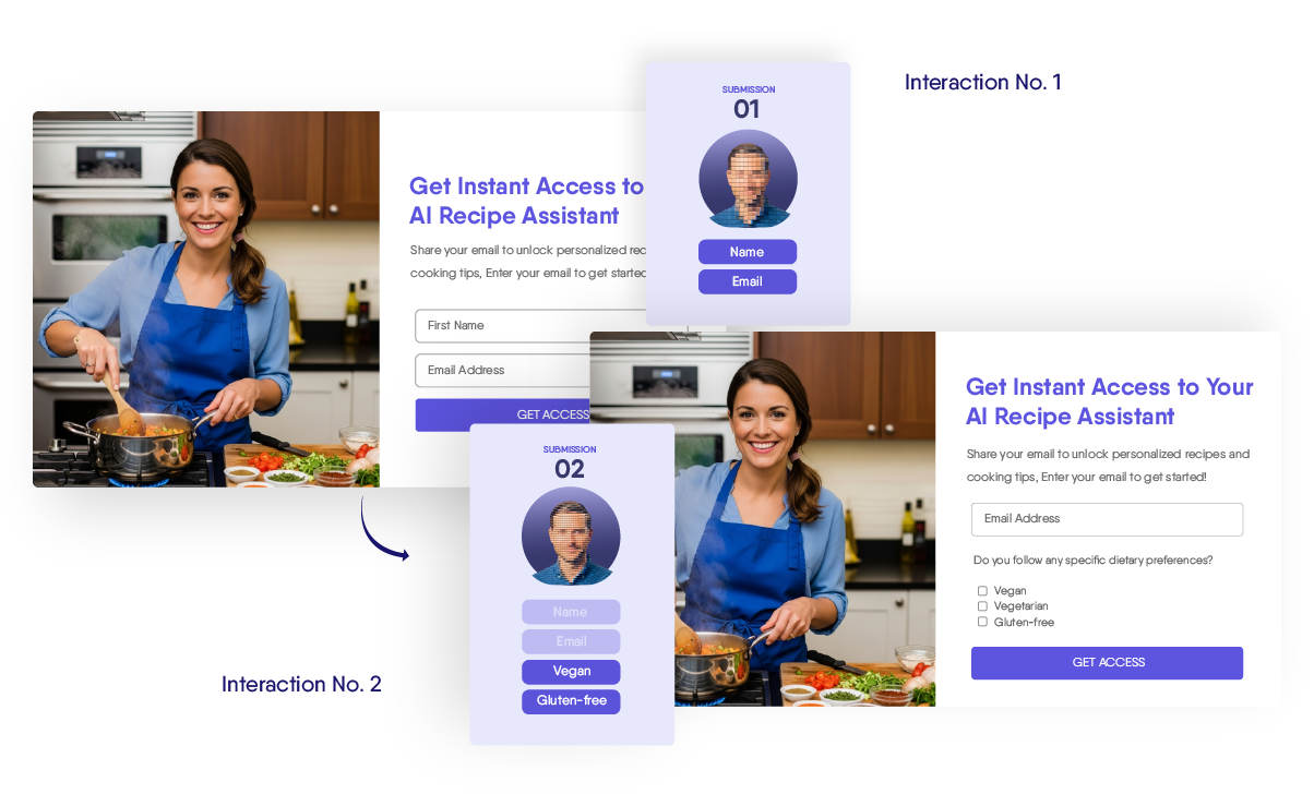 Ask one smart question per visit with Progressive Forms, collect diet, cuisine, skill step-by-step to personalize email follow-ups automatically. No long forms anymore!