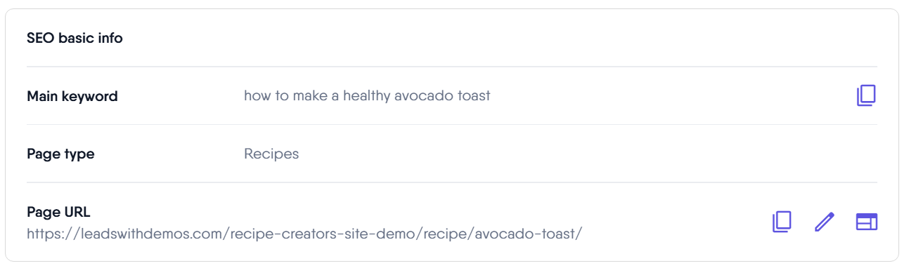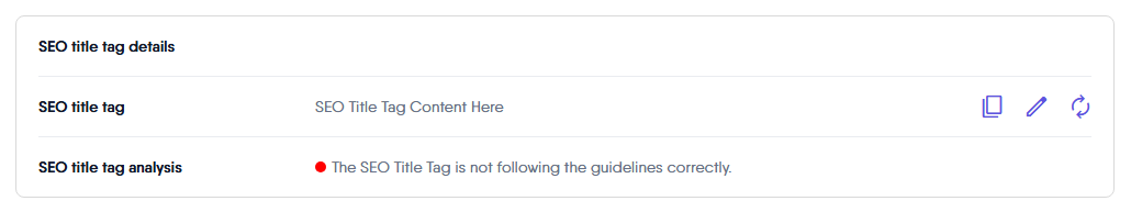 The clipboard icon enables you to copy the SEO title tag text to the clipboard quickly, making it easy to utilize this title in other areas of the website or for sharing with team members.
