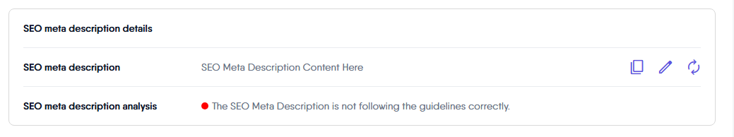 This feature helps you create optimized meta descriptions without starting from scratch, ensuring that the suggestions align with SEO best practices.