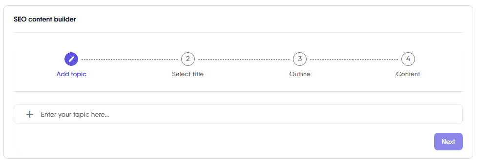 The “Add Topic” step marks the beginning of the SEO content creation process. This step is crucial as it lays the foundation for the article you are about to create.