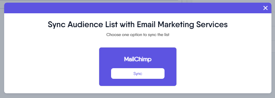 After authorization, you’ll be able to select an audience list from your Email Marketing service to synchronize with your LeadsWithDemos site.