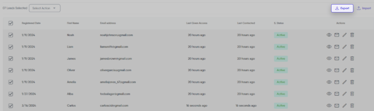 Use this button to export all subscribers currently available within your LeadsWithDemos site. This will provide you with a comprehensive list of subscribers that you can use for various purposes, such as analyzing subscriber data, targeting email marketing campaigns, or integrating with other CRM systems.