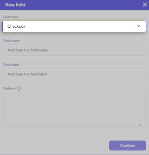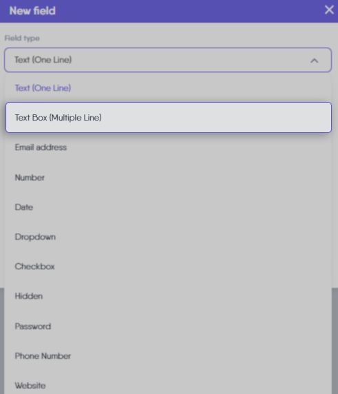 By clicking the “Add Custom Field” button, a popup window will appear, allowing you to select the field type. Please note that each field type will have different configurations.