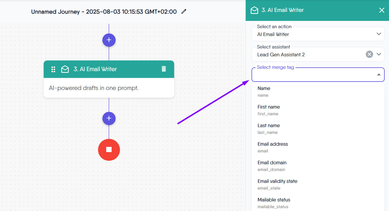 This data field contains which AI assistant handled the subscriber’s inquiry during email capture campaign interactions. The AI Email Writer references this information to acknowledge any prior support provided or to introduce further guidance based on the subscriber’s previous experience.