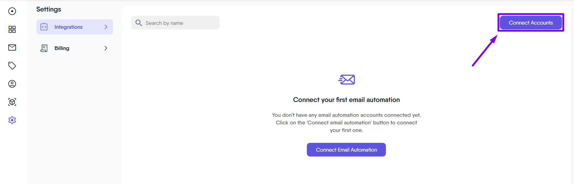 - Select ‘Integrations’ from the left-hand menu.