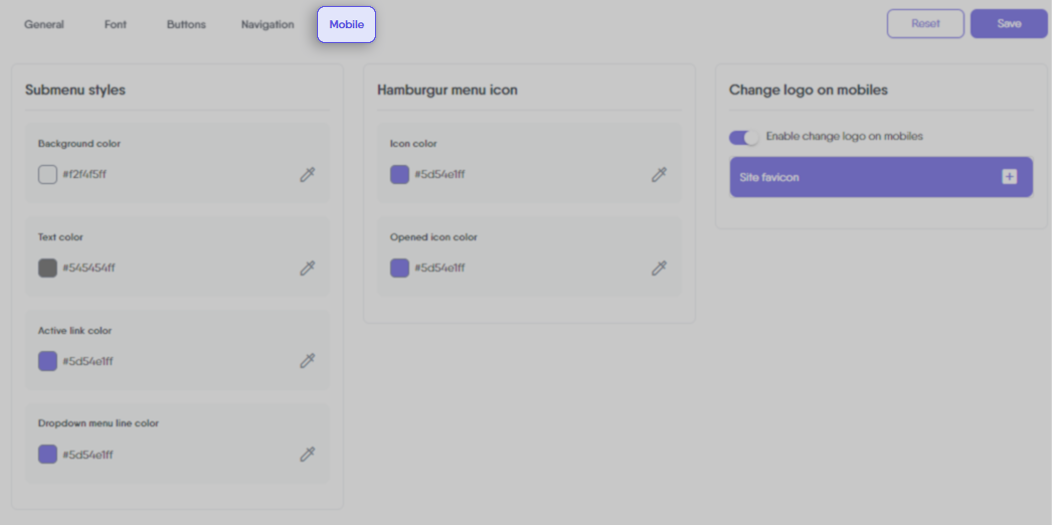 This on/off toggle lets you decide whether to use a different logo for mobile devices. When enabled, an upload section labeled ‘Mobile Logo’ appears, where you can add or remove your logo specifically for mobile viewing. This feature ensures your logo remains clear and impactful on all devices, allowing for tailored branding on smaller screens.