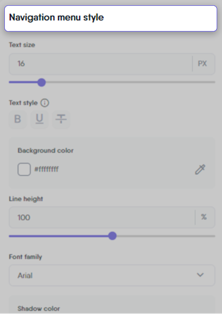 Pick a color for any shadow effects in the navigation menu. Set it to fully transparent if no shadow is desired, offering versatility in design.
