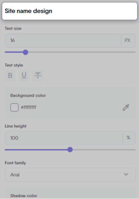 Set a shadow color for the site name text to add depth or visual interest. If a shadow is not desired, you can opt for no shadow.
