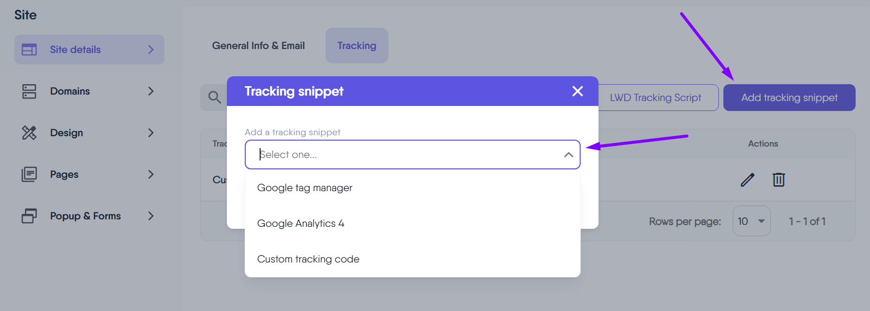 Use this option to remove tracking snippets that are no longer needed. This ensures that your tracking setup remains relevant and clutter-free, focusing only on the metrics that matter most to your business.