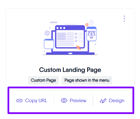 This allows you to copy the URL of your custom landing page for easy sharing, reference, or to paste it in the browser for live viewing. It’s a handy feature for quick access and sharing your page externally.