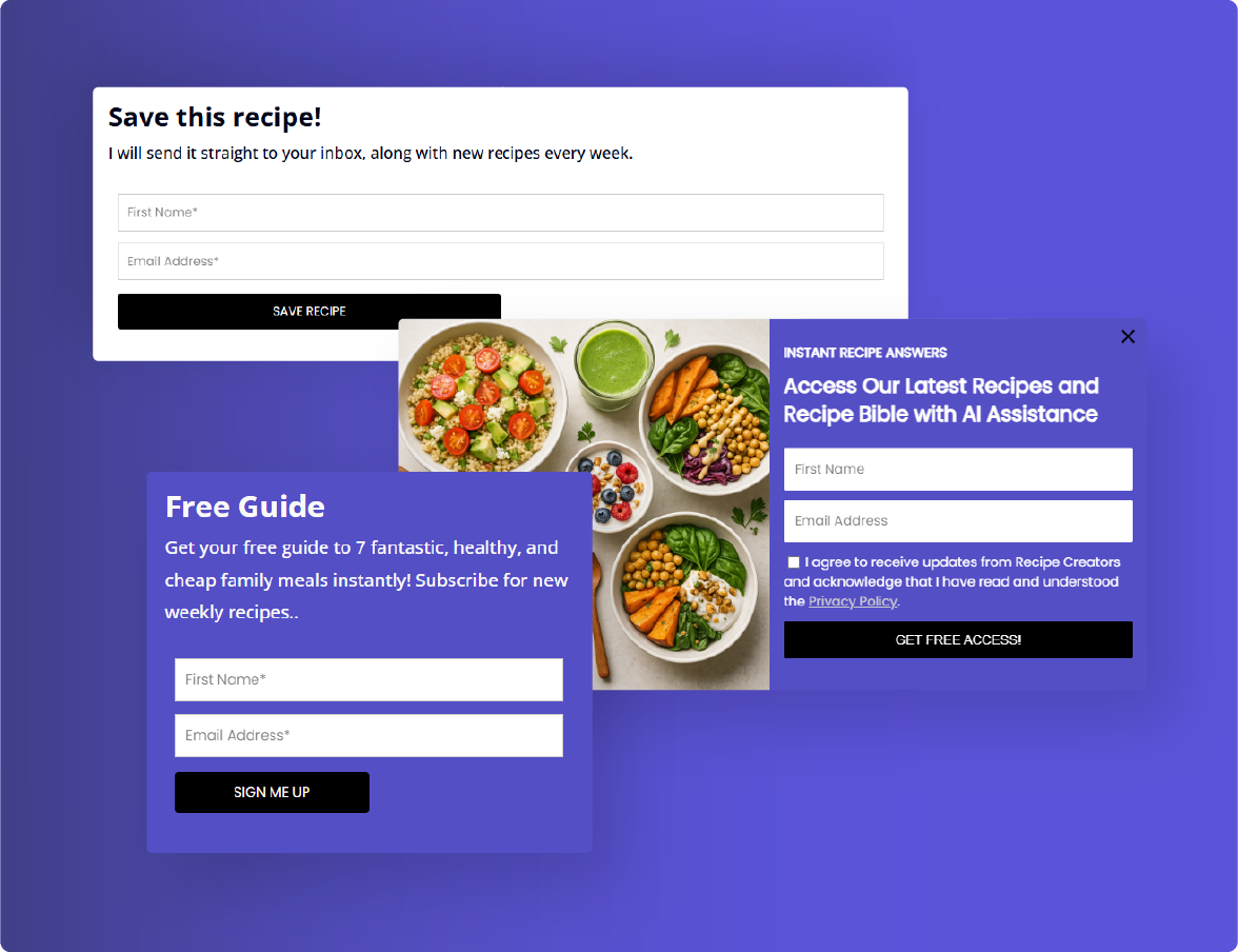 Turn helpful moments into subscribers; use popups, landing pages, or a recipe helper that trades answers for emails.